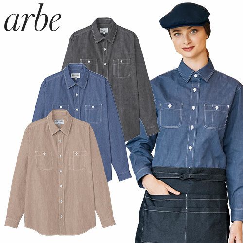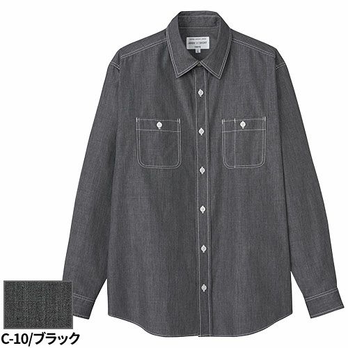 黒シャツ ブラック ワイシャツ レギュラーカラー チトセ アルベ arbe ダンガリー 長袖ボタンダウンシャツ EP-8235 飲食店 制服 ユニフォーム メンズ レディース レストラン カフェ おしゃれ かわいい かっこいい男女兼用 事務 オフィス ビジネス フォーマル