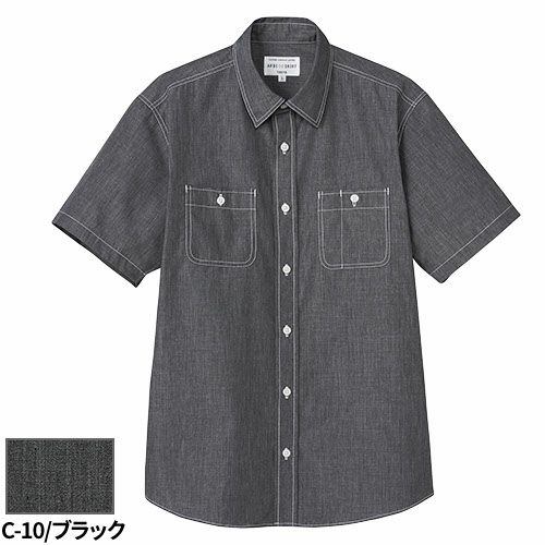黒シャツ ブラック ワイシャツ レギュラーカラー チトセ アルベ arbe ダンガリー 半袖シャツ EP-8606 飲食店 制服 ユニフォーム メンズ レディース レストラン カフェ おしゃれ かわいい かっこいい男女兼用 事務 オフィス ビジネス フォーマル