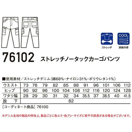 自重堂 Z-DRAGON 作業服 接触冷感ストレッチデニムカーゴパンツ 76102 作業着 春夏 2020年春夏新作 ジードラゴン メンズ