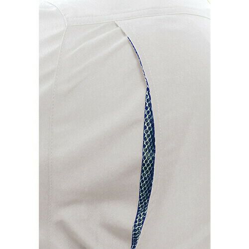 夏でも快適な着心地を実現する素材と衣服内のムレを軽減するノーフォークメッシュを採用 ドビークロスの地模様の連続によって表現される「ドビーストライプ」適度な張りがあり、シワになりにくい軽くて通気性が良く、汗をかいてもすぐ乾く伸びる素材で静電気もおきにくい、着心地爽快なストレッチユニフォーム