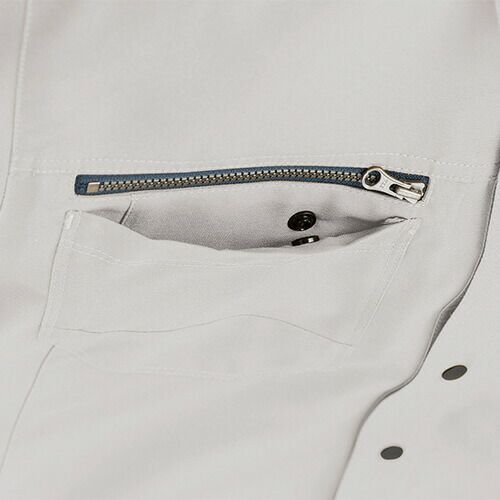 左胸に手帳もラクラク収納できるWポケットを装備。 服に立体感を与える肩ダーツと背中の切り替えしで着心地もアップ。