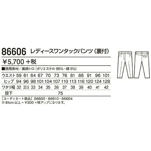 自重堂 作業服 86306 ワンタックパンツ 春夏 レディース 作業着 ボトムス ワークウエア レディースパンツ