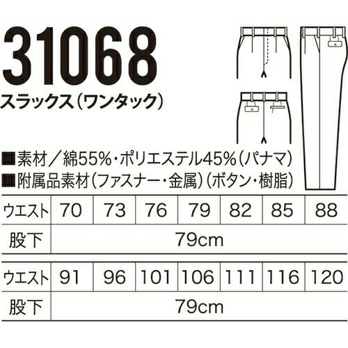 クロダルマ 31088 スラックス(ツータック) 裏綿 作業着 ボトムス ワークウエア ワークウェア 作業服(秋冬・通年) パンツ・スラックス 腿ポケット無ズボン 作業服 作業ズボン 作業パンツ ワークパンツ ズボン おしゃれ かっこいい オフィス ユニホーム 作業 軽作業 外作業 工場 現場