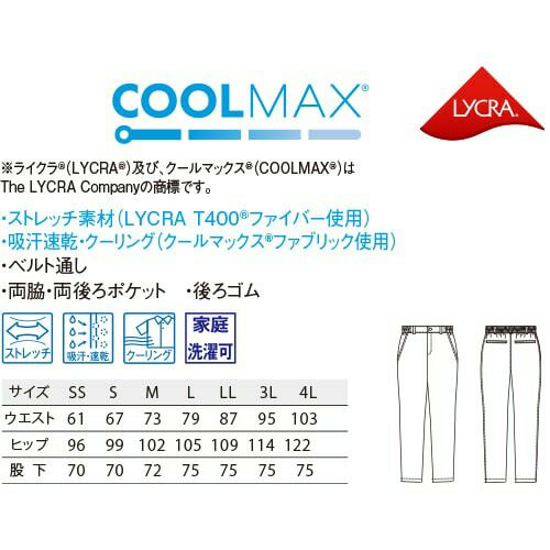 清潔感のあるすっきりシルエット。動きやすさのヒミツはウエストゴム。 裾に向かってシェイプされたスッキリとしたシルエット。スマートな印象でありながら、ストレッチ機能とウエストの後ろゴム仕様で窮屈感はなく、あらゆる動きにフィットします。