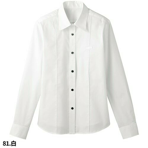 白シャツ ホワイト 黒シャツ ブラック ワイシャツ ワイドカラー ボンユニ BONUNI ボストン 長袖ホリゾンタルカラーシャツ 24215-81 24215-99 飲食店 制服 ユニフォーム レディース レストラン カフェ おしゃれ かわいい女性用 事務 オフィス ビジネス フォーマル