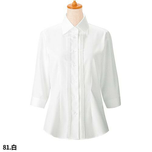 白シャツ ホワイト ワイシャツ レギュラーカラー ボンユニ BONUNI ボストン 七分袖シャツ 24225-81 飲食店 制服 ユニフォーム レディース レストラン カフェ おしゃれ かわいい7分袖 女性用 事務 オフィス ビジネス フォーマル