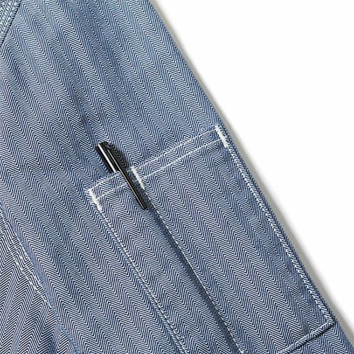 柔らかく着心地の良いシャンブレー素材を使用したシャンブレー長袖シャツ バイアス使いのポケットが特徴でどんなシーンでも着用できるベーシックなデザイン