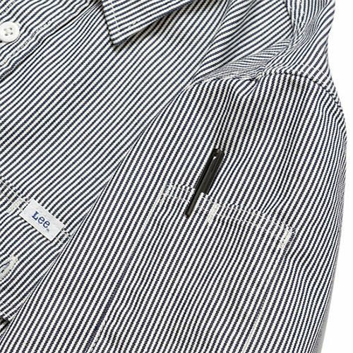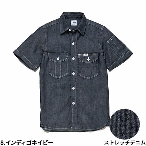 飲食店ユニフォーム メンズ レギュラーカラー Lee メンズシャンブレー半袖シャツ LCS46005 男性用 制服 レストラン カフェ サービス業 デニム おしゃれ シンプル スタイリッシュ