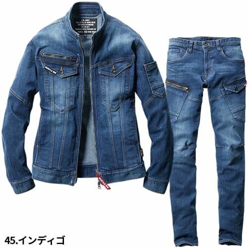 バートル 作業着 デニム 上下セット BURTLE 秋冬 ジャケット5001 + カーゴパンツ5002 ストレッチ 作業服 制服 セットアップ おしゃれ 人気 かっこいい おすすめ ユニフォーム 大きいサイズ 4L 5L ブルゾン ジャンパー 作業ズボン メンズ レディース 男女兼用 建設業