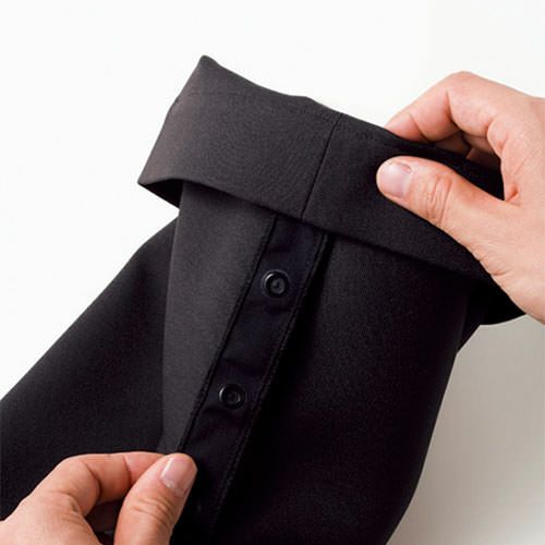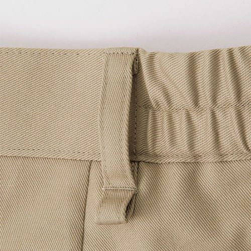 アルバイト必見!裾上げ不要のチノパン!! 1人暮らしなどで裁縫道具を持っていなくても、スナップボタンで5段階に裾上げ可能!カラー展開もどんなシーンにも合わせやすいベージュ、黒、ネイビーが採用されています。店舗側も支給しやすいアイテムです!