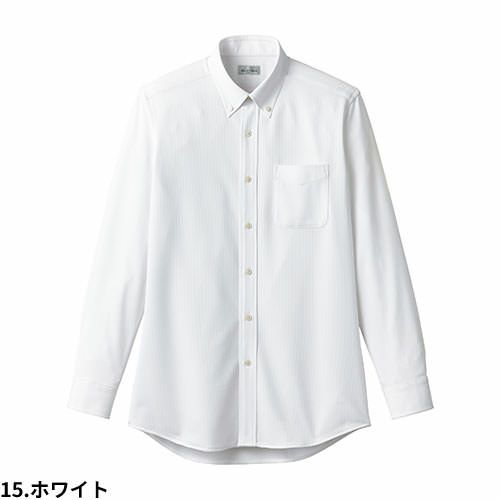 白シャツ ホワイト ワイシャツ FACEMIX フェイスミックス ボタンダウンニット長袖シャツ FB4557U 飲食店 制服 ユニフォーム メンズ レディース レストラン カフェ おしゃれ かわいい かっこいい男女兼用 定番 無地