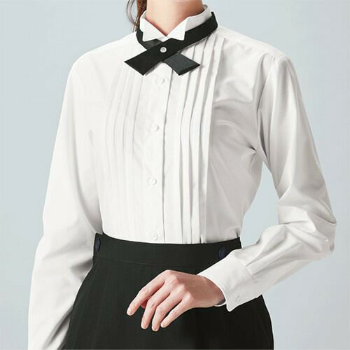 白シャツ ホワイト 黒シャツ ブラック ワイシャツ ワイドカラー ボンユニ BONUNI ボストン 長袖ホリゾンタルカラーシャツ 24215-81 24215-99 飲食店 制服 ユニフォーム レディース レストラン カフェ おしゃれ かわいい女性用 事務 オフィス ビジネス フォーマル