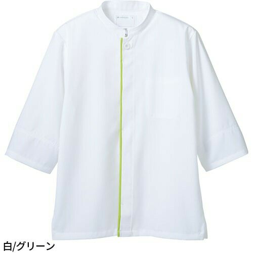 清潔感に彩りを添える、爽やかカラー。 アシンメトリーな前合わせにパイピングとボタンをあしらい、胸ポケットにもラインをプラス。帽子やエプロンなど、小物とのカラーコディネートも楽しめます。