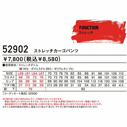 2020年秋冬新作 作業服 カーゴパンツ 自重堂 ストレッチデニムカーゴパンツ 52902 作業着 通年 秋冬 ストレッチ かっこいい カジュアル スタイリッシュ デニム調