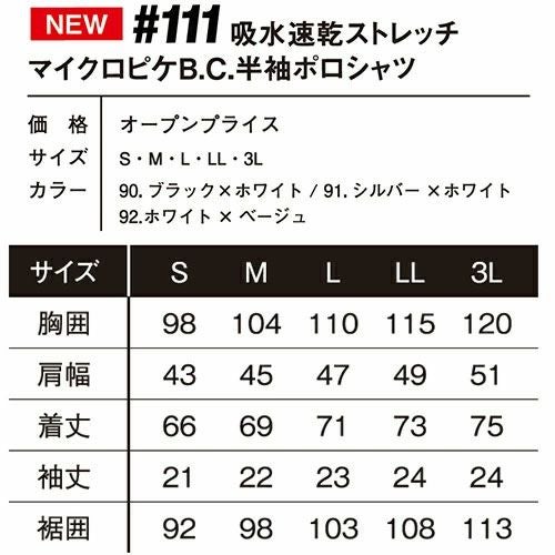 ワークシーンだけでなくスポーツウェアや普段着としても活躍する、オールラウンダーな冷感ポロシャツ ●高級感あふれるシャープなルックスは、着るシーンを選ばずワークシーンだけでなく様々な場面で着用可能●独自開発の素材により、一般的な天竺素材と比べ約1.8倍の優れた通気性を実現●優れた吸汗速乾性でさらっとした着心地●フルダル糸が透け感を軽減●UVカット96%で紫外線も怖くない●タテ36%・ヨコ45%の超ストレッチ性能で動きやすい●色落ちしにくく、抗ピリング性能付きで毛玉もできにくい●JIS基準値をクリアした接触冷感指数を有し、着用するとひんやり気持ちいい●便利なダブルポケットなどワークシーンに役立つ機能も満載●襟裏側のラバープリント加工、前立てオリジナル部ランサーボタンなど細部までこだわったデザイン